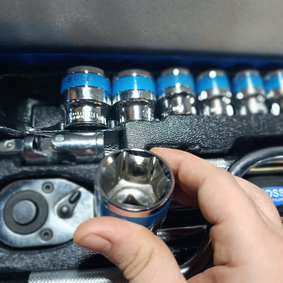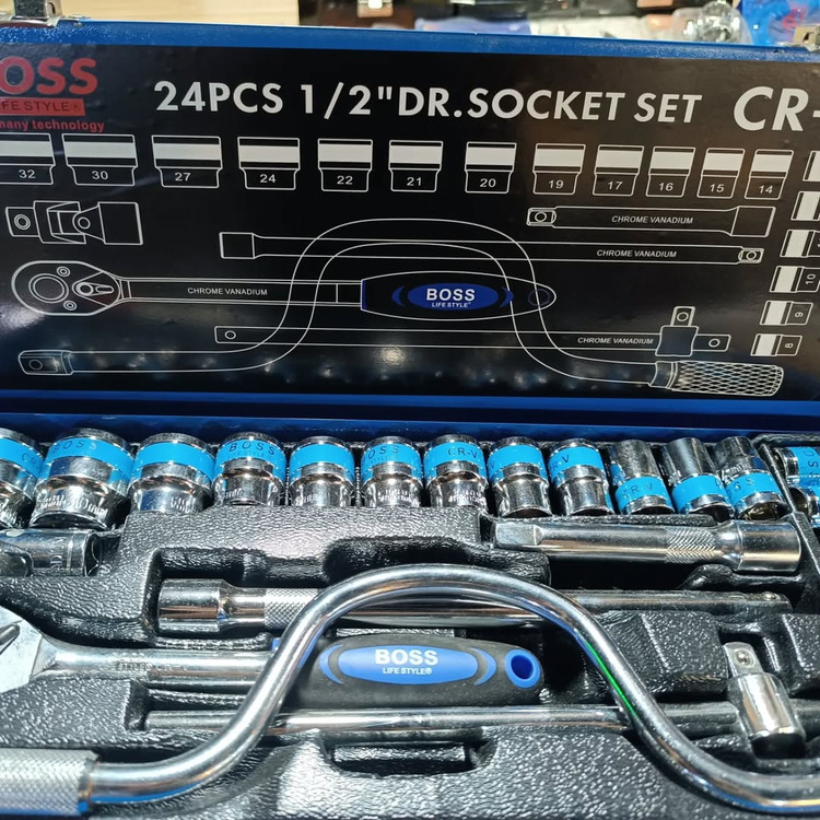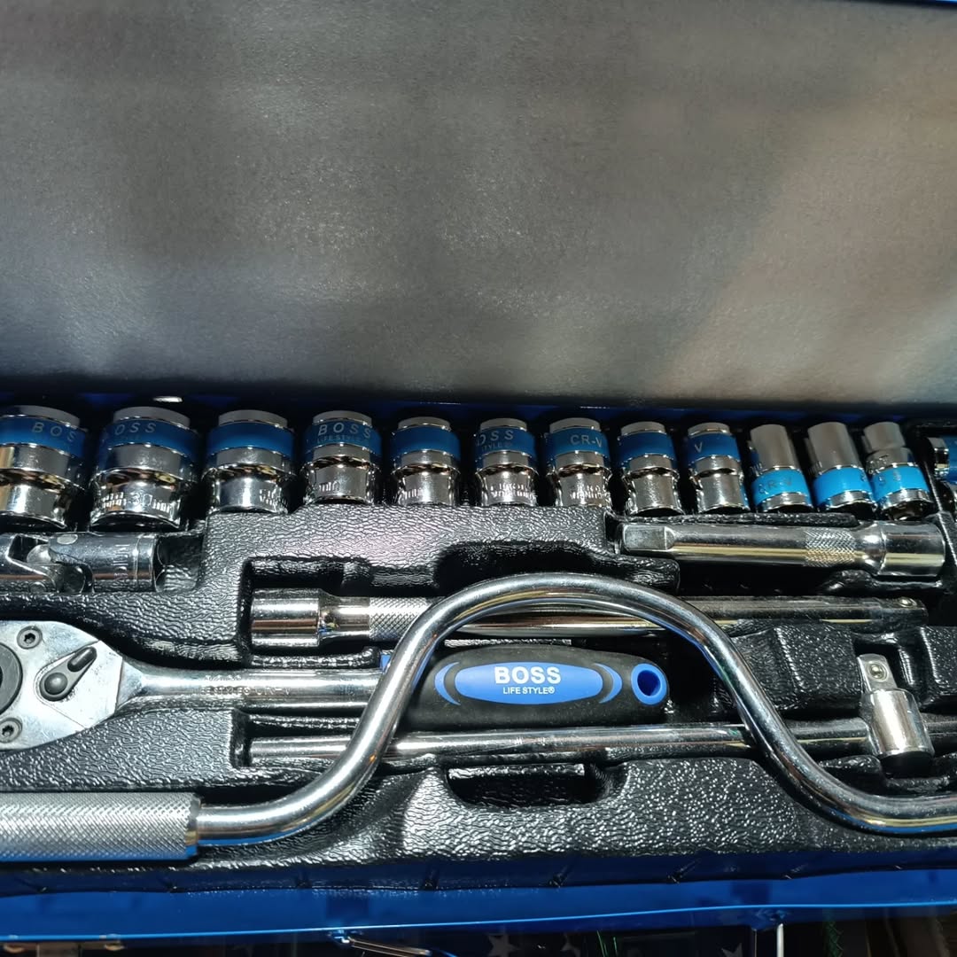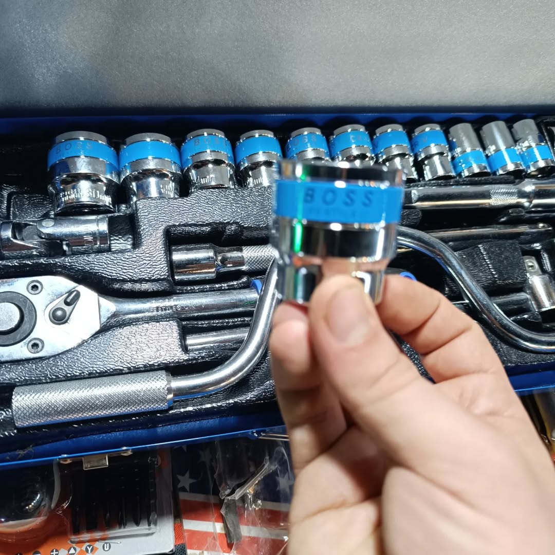 درایو ۱/۲ (سایز بزرگ) به همراه رابط بکس تاشو ۱/۲ دارای ۱۸ عدد بکس( سایزهای: ۸، ۱۰، ۱۱، ۱۲، ۱۳، ۱۴، ۱۵، ۱۶، ۱۷، ۱۸، ۱۹، ۲۰، و ۳۲) دارای جغجغه ضامن دار کله گاوی و قدرتمند به همراه دو عدد کمک بکس ۱۲.۵ و ۲۵ سانتی متری دارای دسته بکس کشویی دسته بکس ارسال به از شهرستان گناوه برای حضوری گناوه میدان امام کنار بانک سپه تومن مناسب به دلیل واردات مستقیم به صورت عمده و تکی موجود