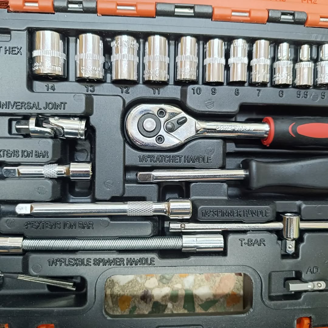 گناوه تولز این مجموعه ۵۳ پارچه یک جعبه ابزار کامل هوا گیری درایو ۱/۴ میلیمتر می باشد. که در ان سعی شده است تمامی بکس های بلند و کوتاه مصرفی و سر پیچ گوشتی ها و دسته بکس های مورد نیاز استفاده شود. این مجموعه از الیاژ کروم وانادیوم ساخته شده است و کیفیتی هم پا در مقابل محصولات گران تایوانی دارد. ارسال به از شهرستان گناوه ادرس برای حضوری گناوه میدان امام کنار بانک سپه تومن زیر کل بازار جهت به پیام بدین #شیراز #