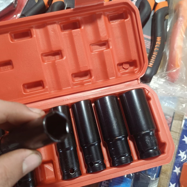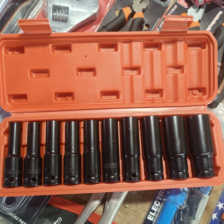 جنس : فولاد کروم وانادیوم نوع بکس : بلند فشار قوی مناسب بکس بادی و کارهای سنگین کارگاهی با جعبه قابل حمل BMC تعداد: 10 عددی سایز بندی بکس ها : 8 - 10 - 12- 13 - 15 - 16 - 17 - 19 - 22 - 24 میلیمتر ساخت چین